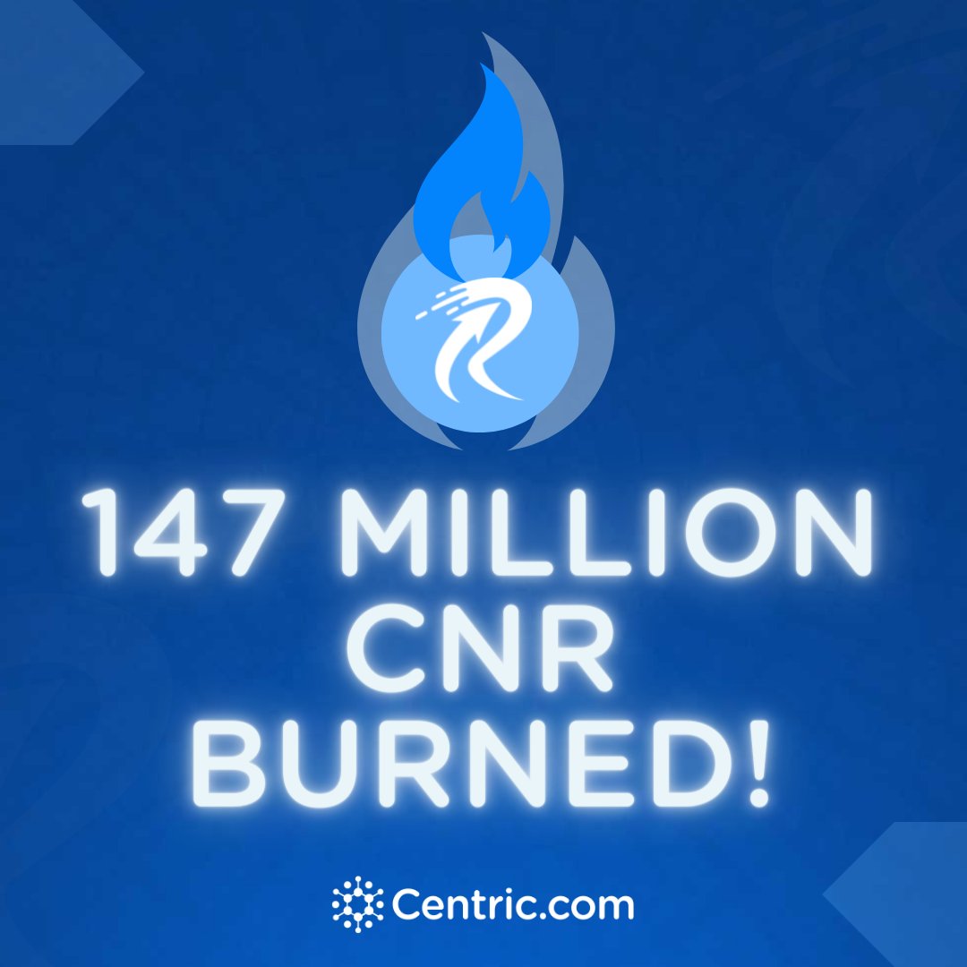 Centric Official On Twitter Over 147m 14 7 Of The Initial 1b Cnr Minted Has Been Cumulatively Burned To Date 148k Cnr Burned Past 24h Burn 7 Days 1 053 546 150 507 Daily Avg Burn
