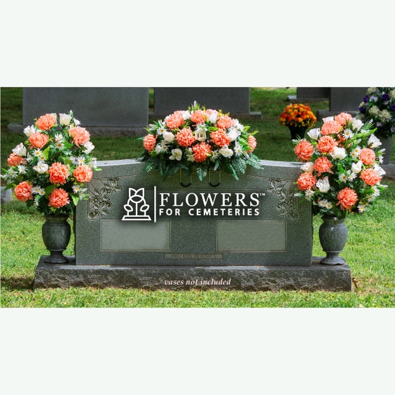 Peach Mum And White Roses Cemetery Saddle And Flower Set Etsy Uk